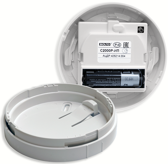 Извещатель имеет встроенные основной и резервный заменяемые источники питания